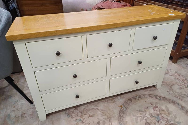 White & oak 6 drawer chest - 78 cm tall x 125 cm wide