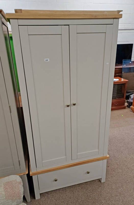 Off white & oak 2 door wardrobe with single drawer to base - 183 cm tall x 90 cm wide