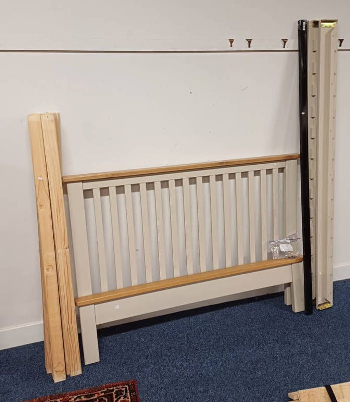 Pair of off white & oak single bed frames
