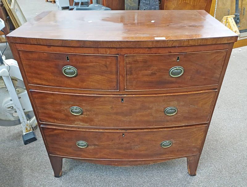 Late 19th century mahogany bow front chest with 2 short over 2 long drawers on splayed supports - 89 cm tall x 90 cm wide