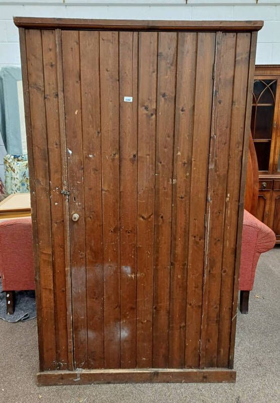 20th century pine single door cupboard opening to shelved interior, 184cm tall x 109cm wide