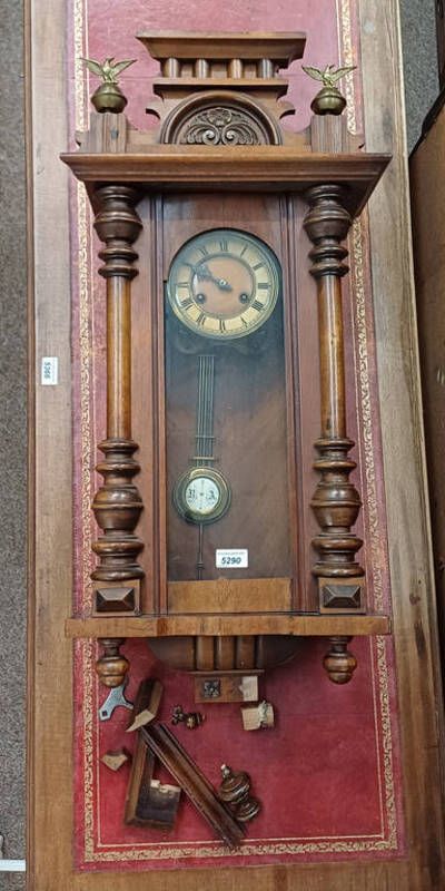 20th century mahogany wall clock with eagle finials - af