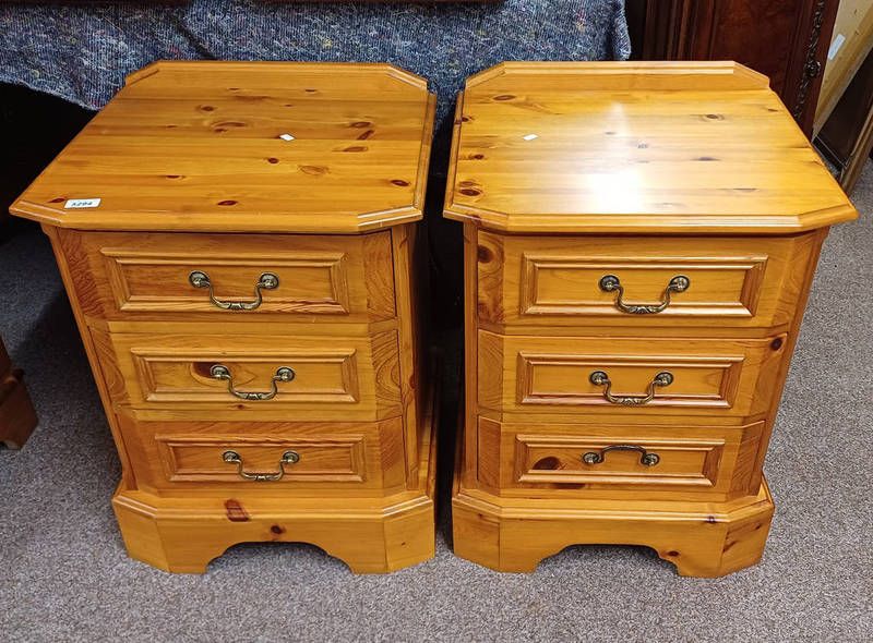 Pair of pine 3 drawer bedside chests, 68 cm tall x 50 cm wide