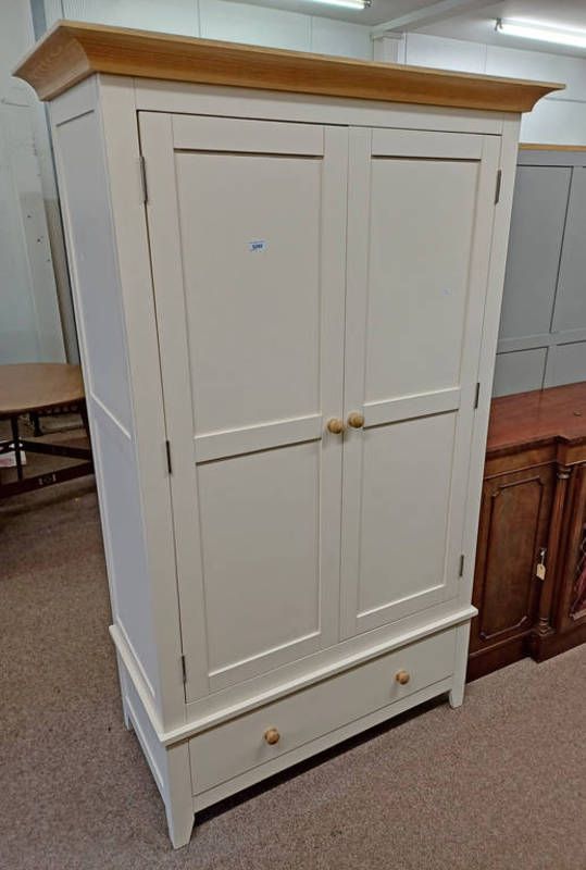 White & oak 2 door wardrobe with single drawer to base - 194 cm tall x 118 cm wide