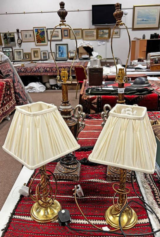 Pair of gilt metal table lamps with twisted shaft design along with a pair of classical urn style table lamps -4-