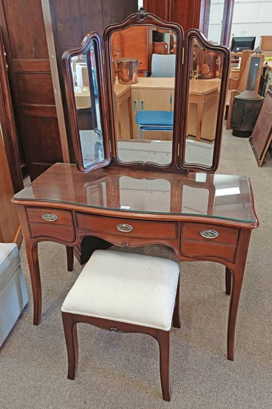 Mark devony windsor dressing table with triptych mirror over 3 drawers & matching stool, 110cm wide