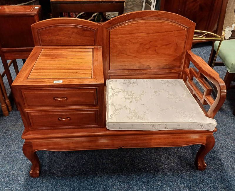 Chinese hardwood phone seat with 2 drawers on ball & claw supports