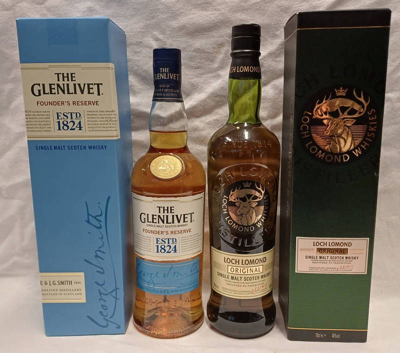 2 bottles single malt whisky: glenlivet founder's reserve - 70cl, 40% vol. & loch lomond original - 70cl, 40% vol. both boxed