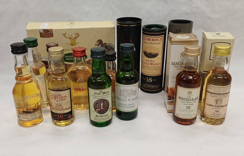 Selection of single malt whisky miniatures to include north port brechin 1981 connoisseurs choice, glenmorangie 18, macallan 10 etc