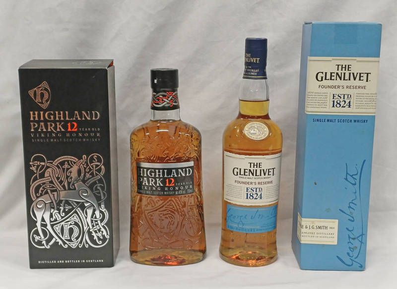 2 bottle single malt whisky: highland park viking honour 12 year old - 700ml, 40% vol. & glenlivet founder's reserve - 70cl, 40% vol. both boxed