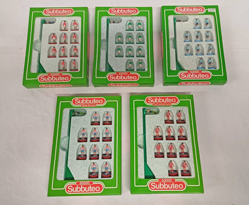 Five subbuteo table football teams including spain, germany, italy, russia and sweden