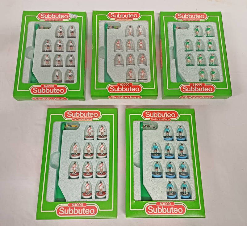 Five subbuteo table football teams including spain, germany, italy, russia and sweden