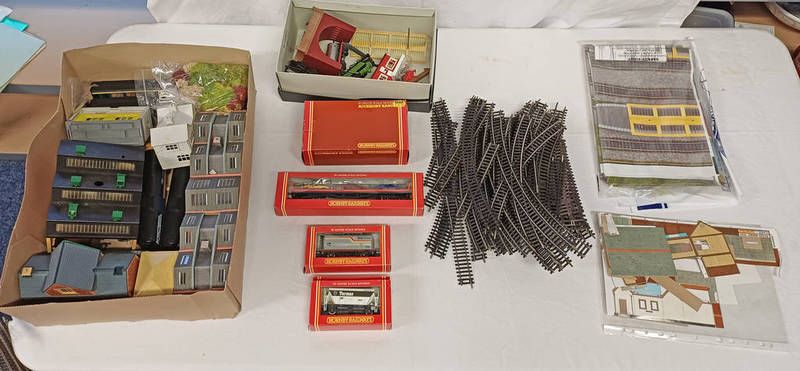 Selection of various oo gauge items including 0-6-0t lner 581 steam locomotive together with various rolling stock, track, buildings and others