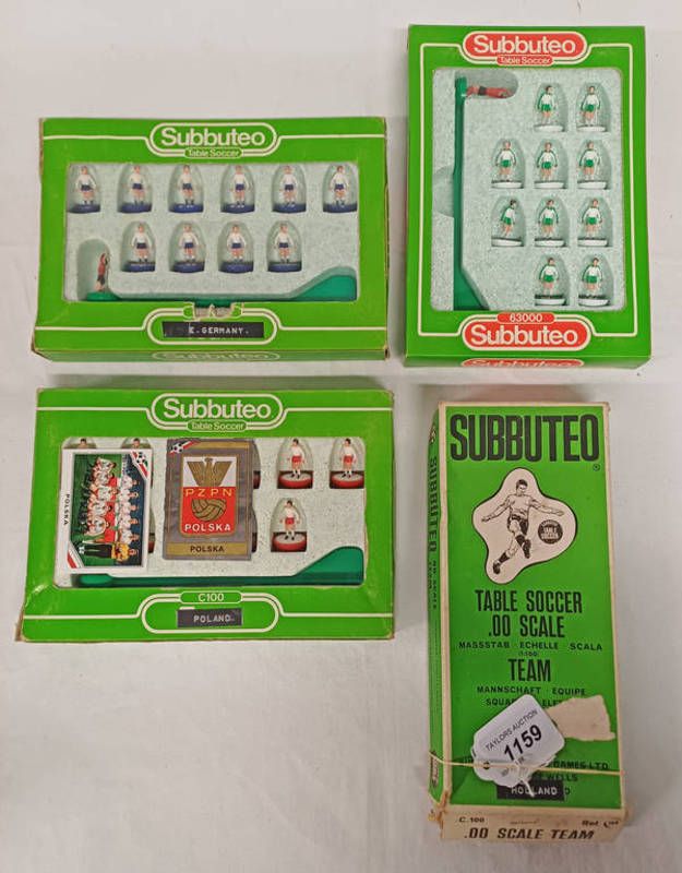 Four subbuteo table football teams including bulgari, poland, east germany / finland and holland