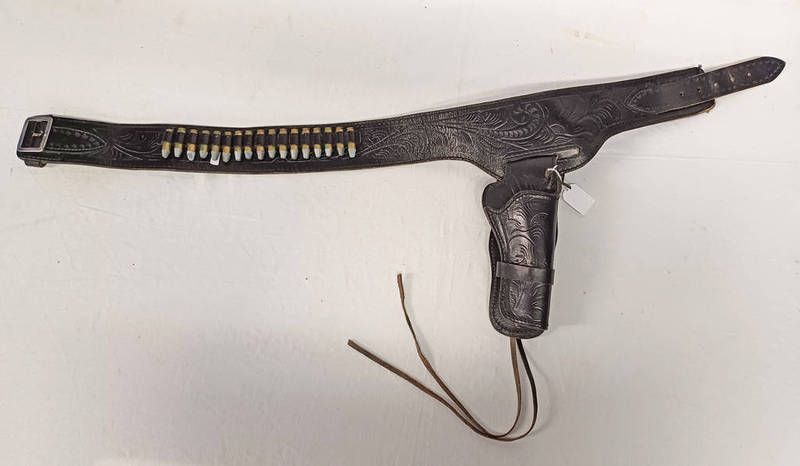 Wild west style leather replica pistol holder & ammunition