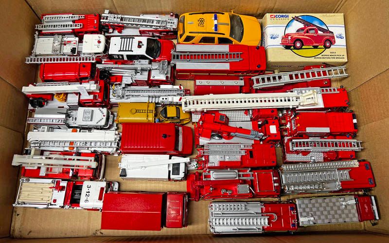 Selection of various model fire engines & related vehicles from del prado & others