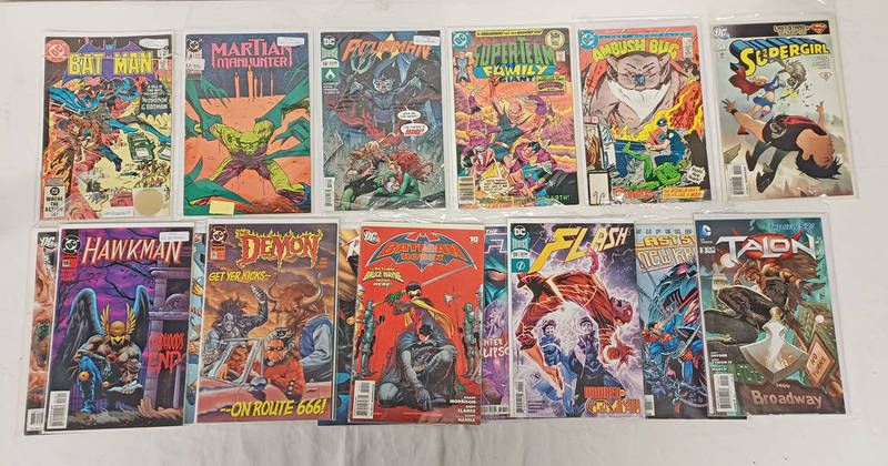 Selection of various dc comics including titles such as aqua man, martian man hunter, batman and others