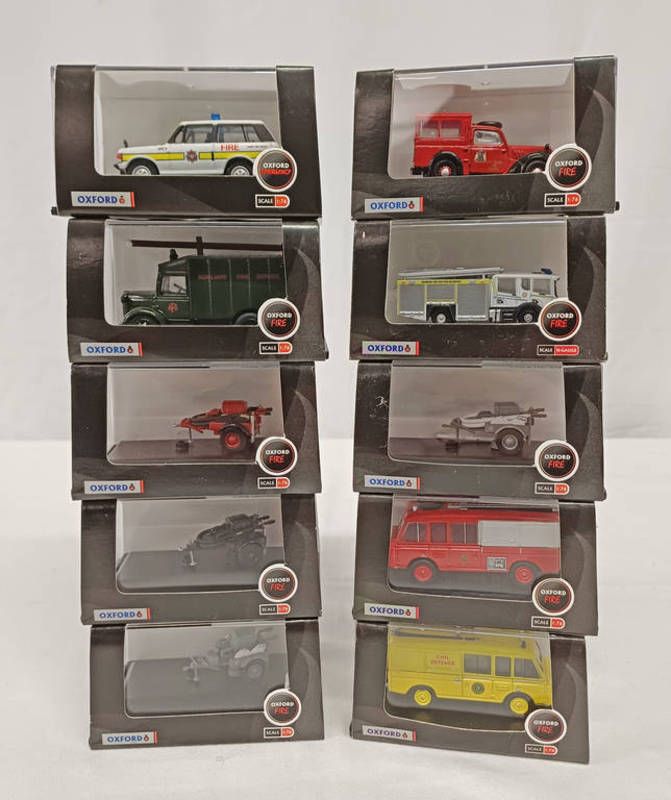 Ten oxford diecast 1:76 oo gauge scale model fire engines including scania cp31 pump ladder,...