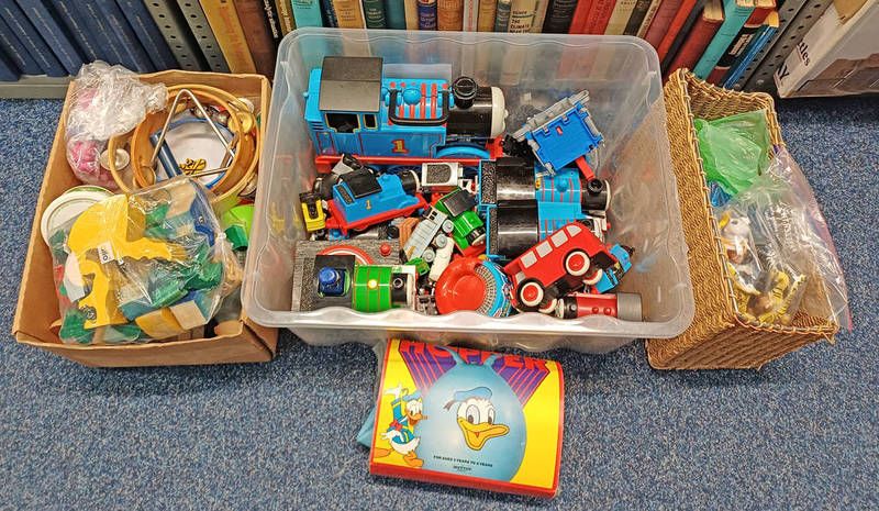 Selection of various thomas the tank engine toys together with animal figures and others