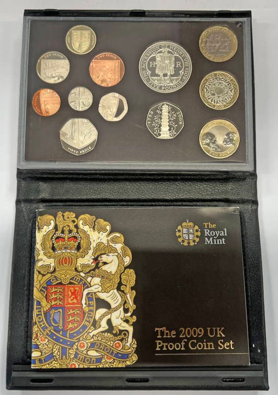 Royal mint 2009 proof coin set including kew gardens 50p etc in case of issue