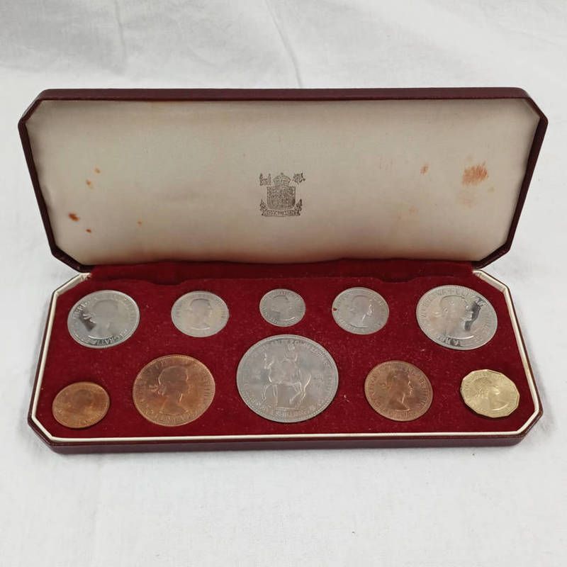 1953 elizabeth ii coronation 10-coin proof set, crown to farthing, in case of issue