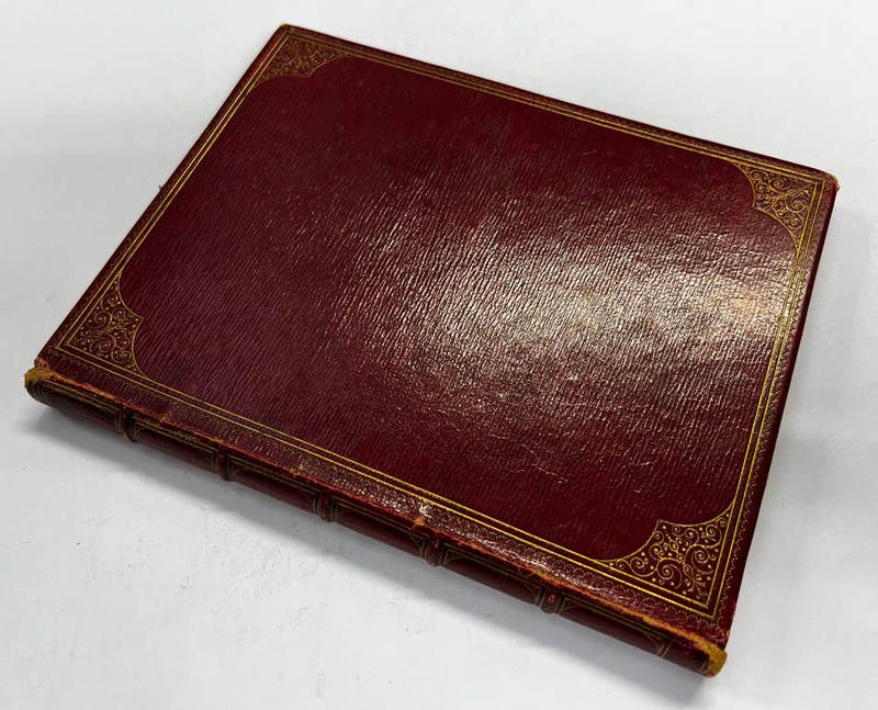 Late 19th or early 20th century red leather bound stamp album (empty)