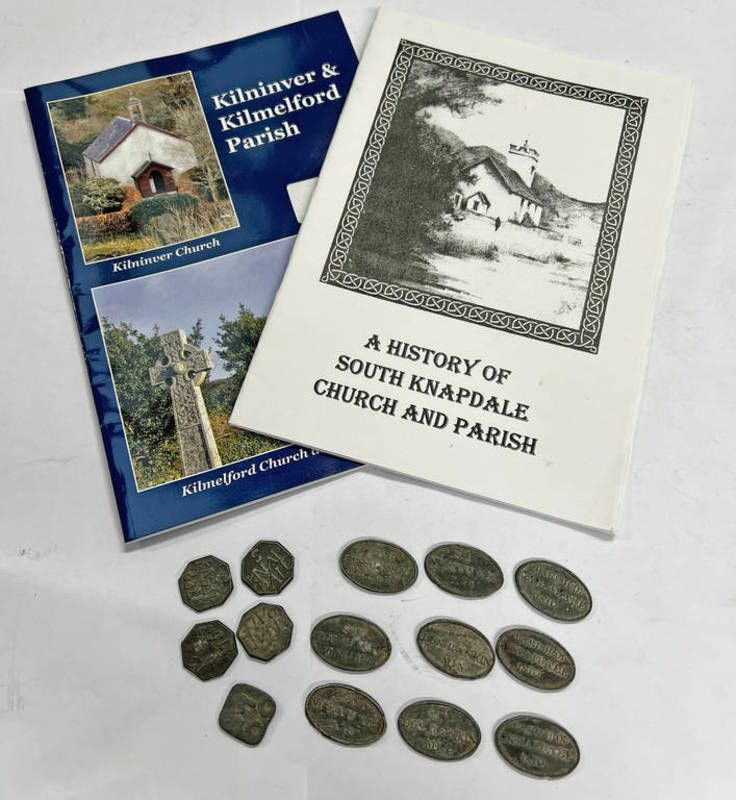 Church tokens - 4 x knapdale m p p 1758, 9 x parish of knapdale 1810 and one other marked mdc possibly -14-