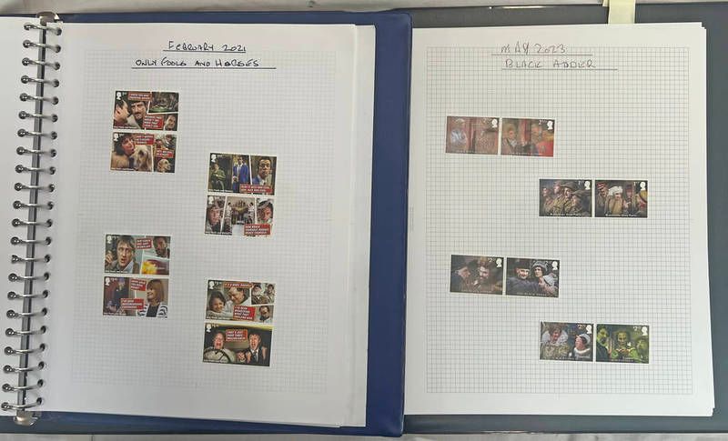2 albums of gb stamps 2019-2023 to include february 2021 only fools and horses, may 2023 black adder etc