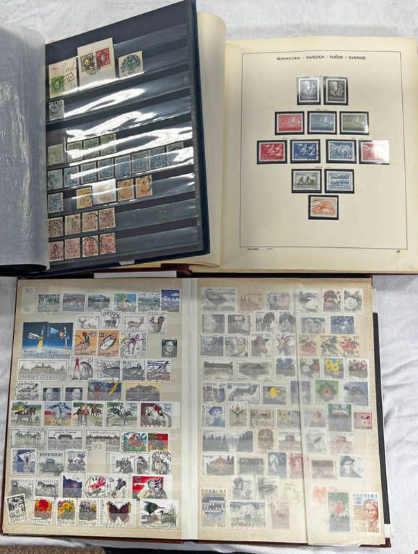 Three albums of swedish postage stamps to include 1872/79 page, 1942 20 kronor, spare programme etc in three albums
