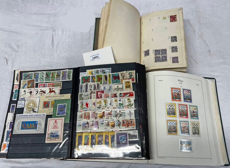 Three polish stamp albums with contents to include album with several full pages from 1960 - 1975, olympics, birds, animals etc -3-