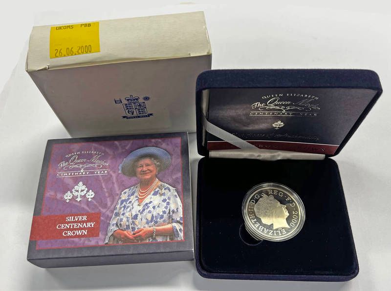 Royal mint queen elizabeth the queen mother centenary year silver proof centenary crown in box with c.o.a.