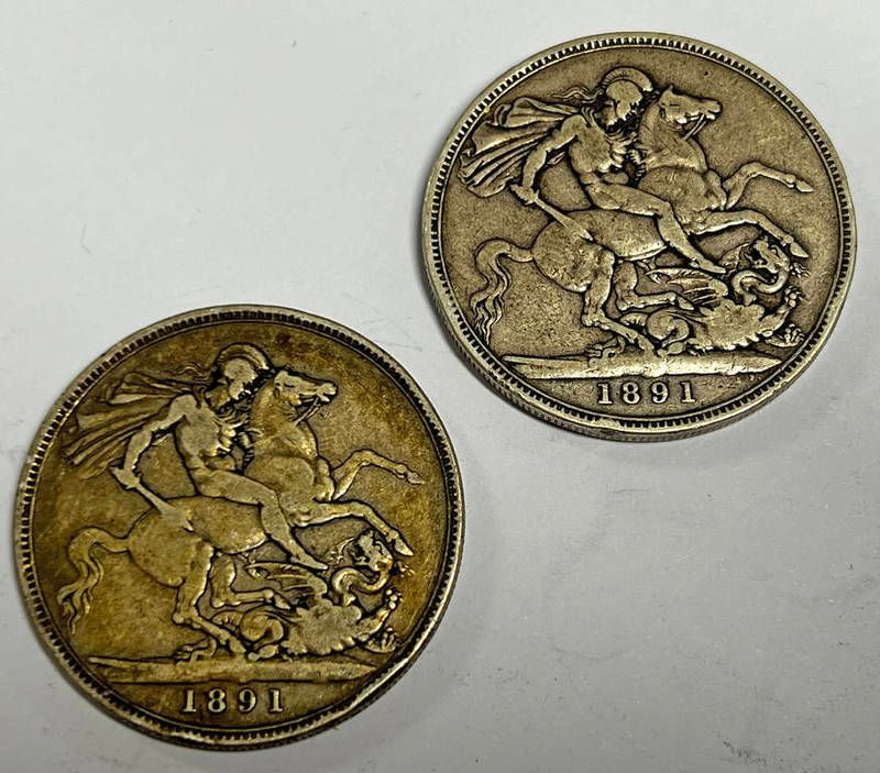 2 x 1891 silver crowns