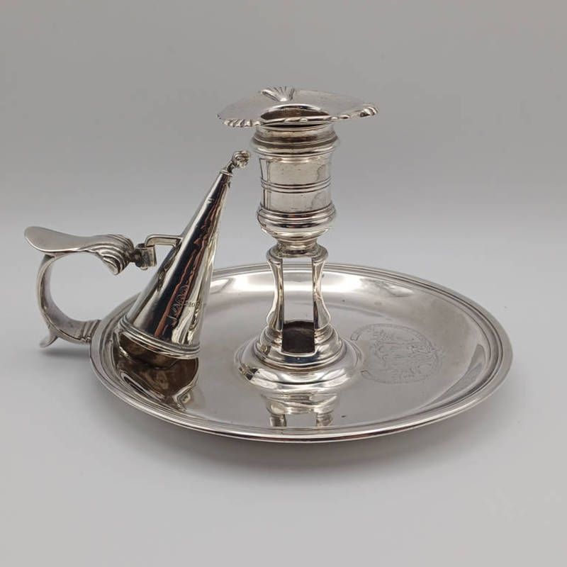 George iii silver chamberstick with matching snuffer, by henry chawner london 1791, weight 275g