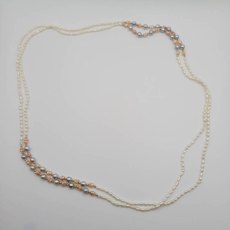 Pearl necklace on screw clasp. length 46 cms & a multi strand pearl necklace on...