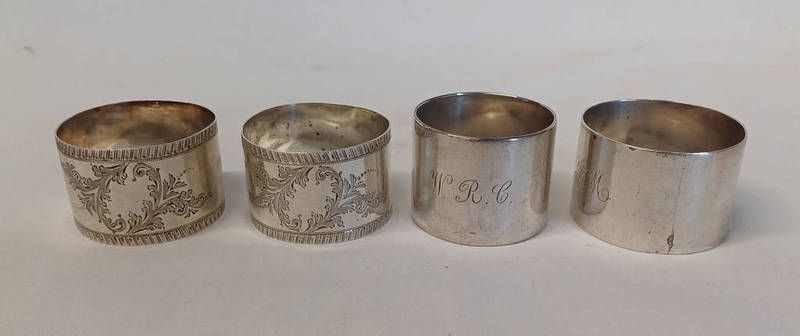 Pair of silver napkin rings with foliate decoration, sheffield 1910 & 2 other silver napkin rings - 145g