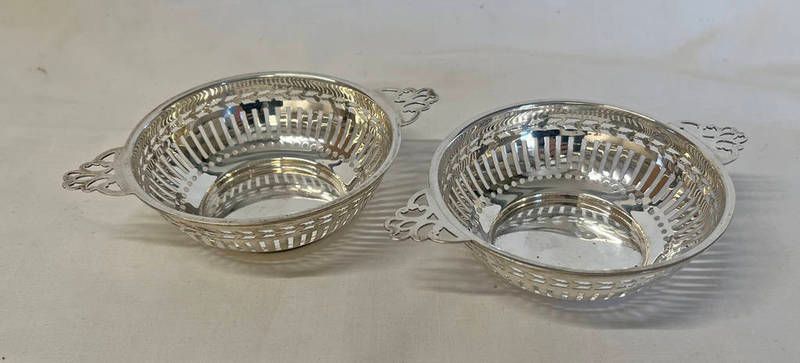 Pair of silver twin handled nut dishes with pierced decoration, birmingham 1932 - 110g