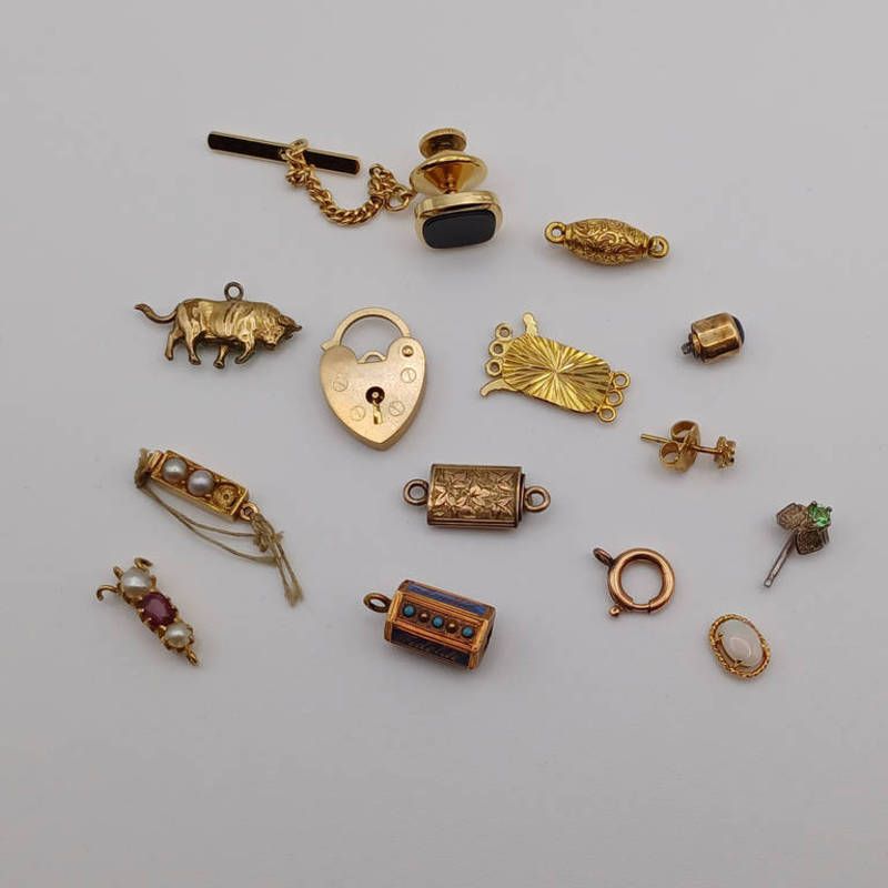 9ct gold clasp , 9ct gold heart 2.5 grams & various other clasps etc.