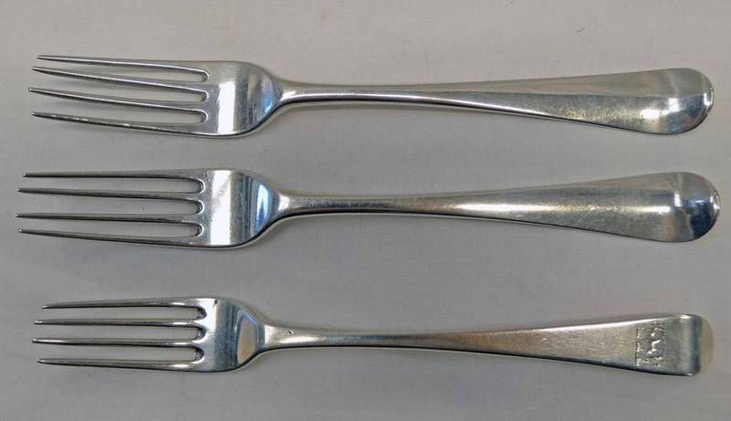 3 irish silver dessert forks to include a pair, all by john pittar, dublin 1784 & 1786. 200g