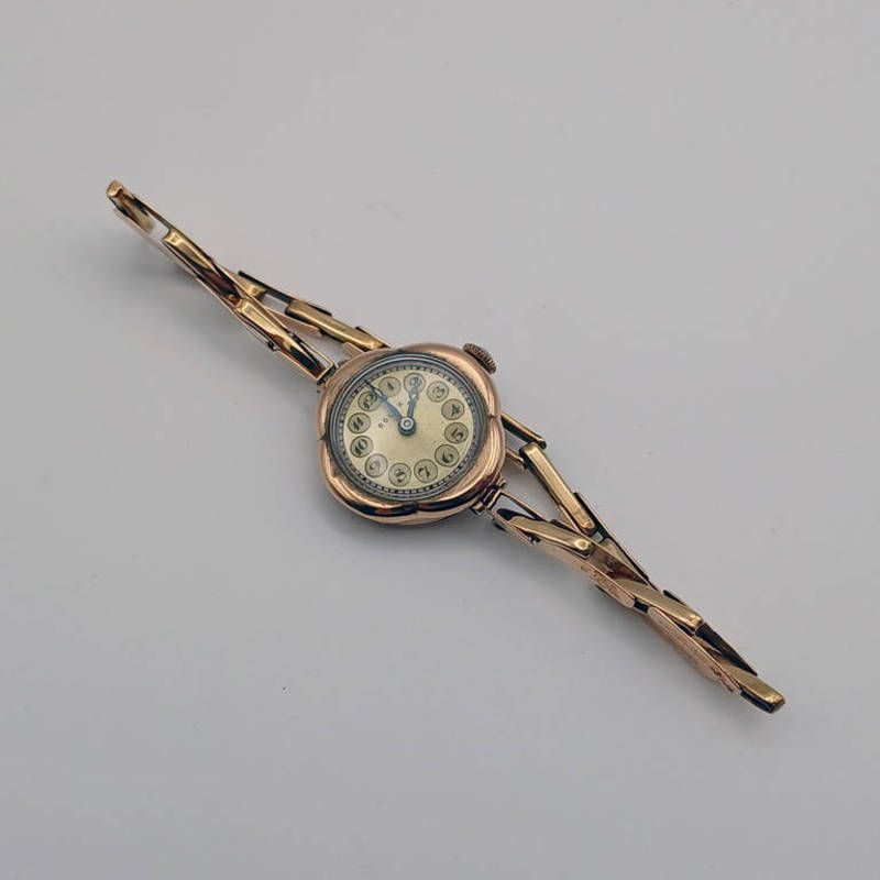 9ct gold rolex ladies wristwatch on a 9ct gold expanding bracelet. weight 14 grams