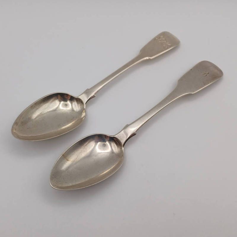 2 hallmarked silver dessert spoons, edinburgh 1833 & marked cameron dundee & london silver desert spoon 1833. 89g
