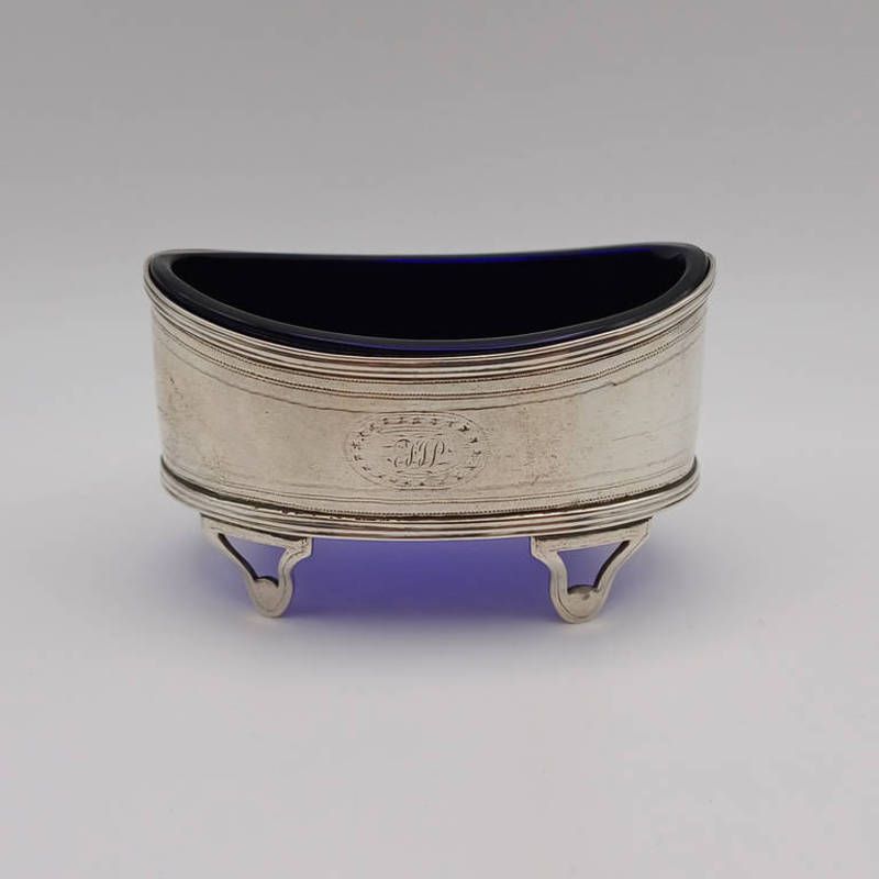 oval silver salt with blue glass liner, london 1844 - 47 grams