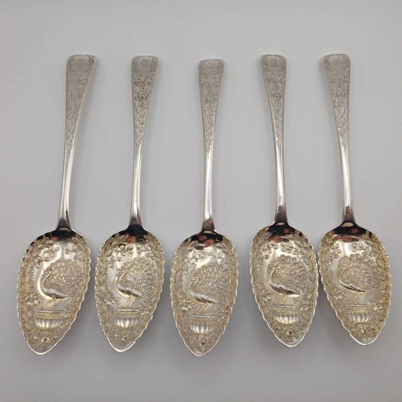 Set of 5 george iii silver fruit spoons, length 22.5cm with embossed decoration, london 1806, 346g