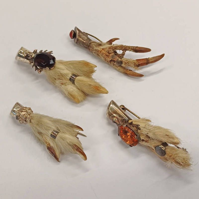 3 scottish kilt pins with silver mounts, edinburgh 1964 & 1962 & glasgow 1958 and one other claw kilt pin brooch