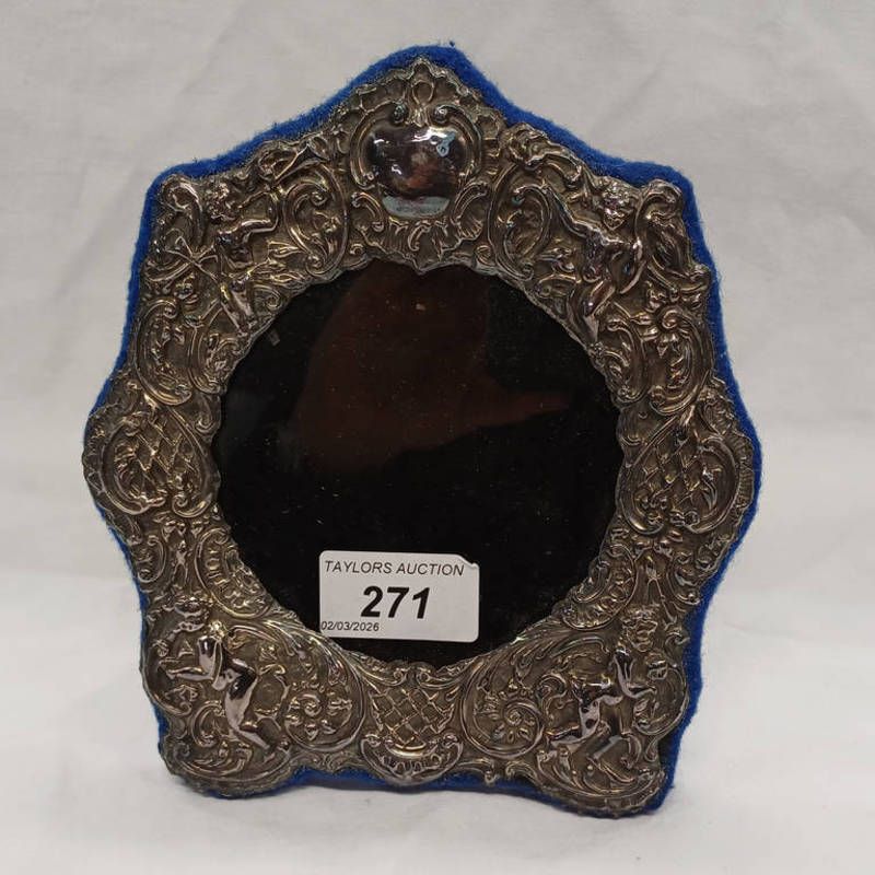 Silver frame with decorative border with cherubs, etc inner diameter 9cm, london 1986