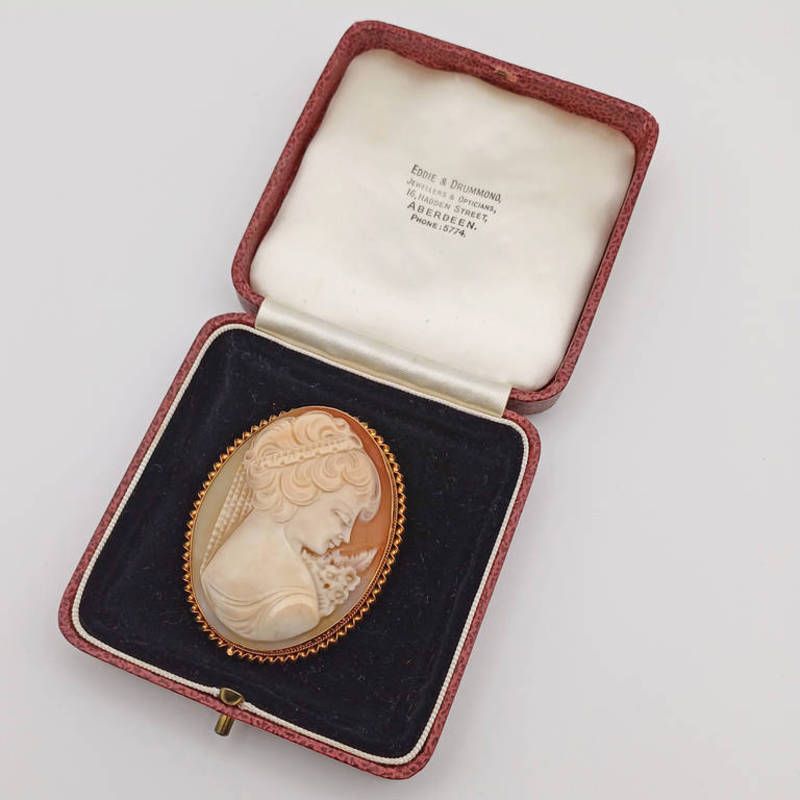 9ct gold oval cameo brooch overall length 5.3 cms - 18.1g
