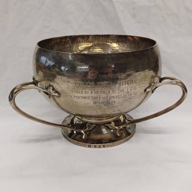 Arts & crafts silver trophy presented for the best collie dog or bitch by the irish collie club. weight 1648 grams, dublin 1902 - 16 cm tall