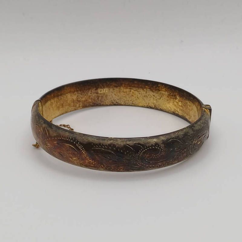 Hallmarked silver bangle with engraved decoration. diameter 6cm, birmingham 1968