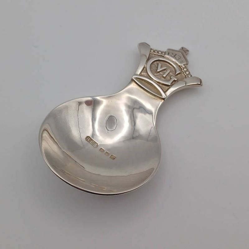 Silver caddy spoon with george vi crown handle by r e stone, london 1936