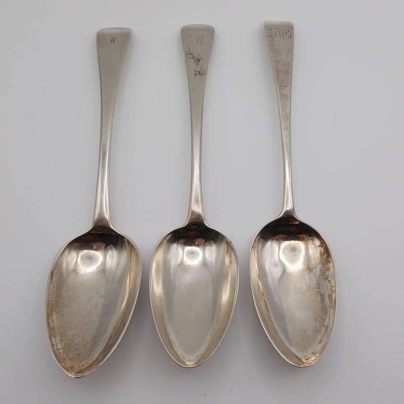 3 george iii silver table spoons, london 1796, 1808 & 1814. 171g