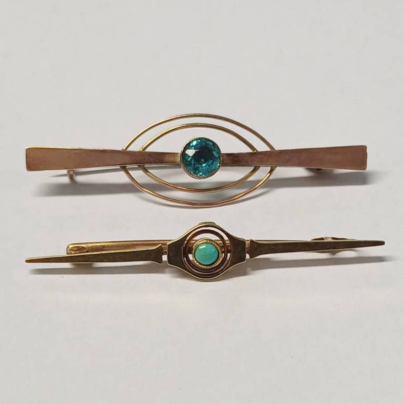 15ct gold turquoise set brooch - 2.1g & 9ct gold zircon set brooch - 1.6g
